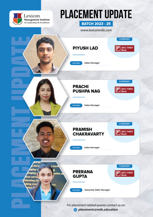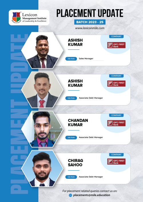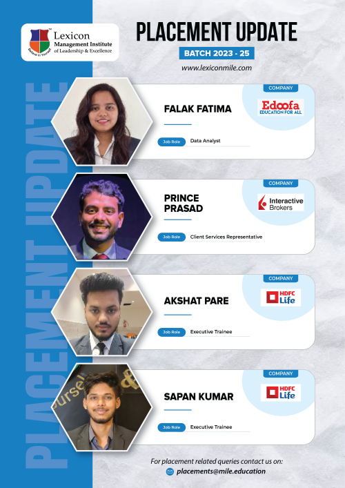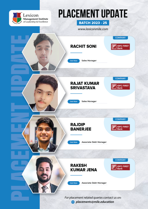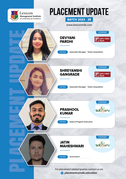 Lexicon Mile continues to achieve remarkable success in the ongoing placements for its PGDM Class of 2023-25. With the highest package reaching an impressive ₹26.6 LPA, Lexicon Mile solidifies its position as one of India’s leading business schools, recognized by NIRF 2025.
